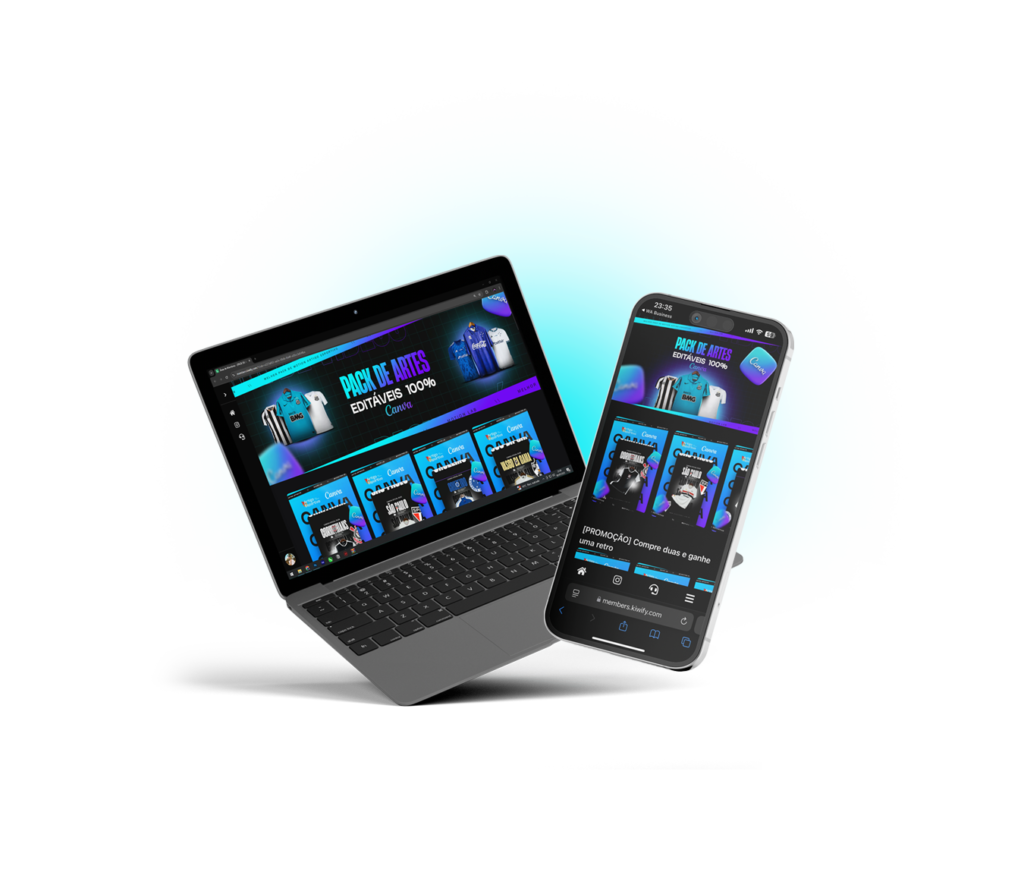 O foco principal é no Canva, mas também incluímos algumas artes em PSD para quem usa Photoshop. Você escolhe o que preferir.