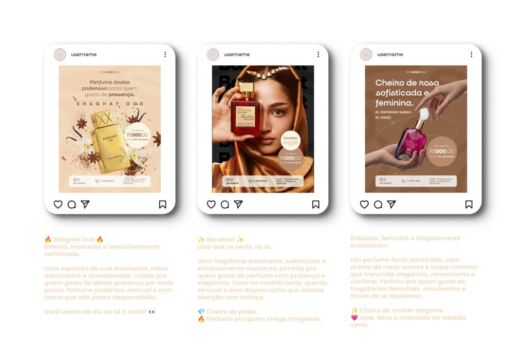 Copie, cole e publique. Textos pensados para vender perfumes árabes com desejo e exclusividade.