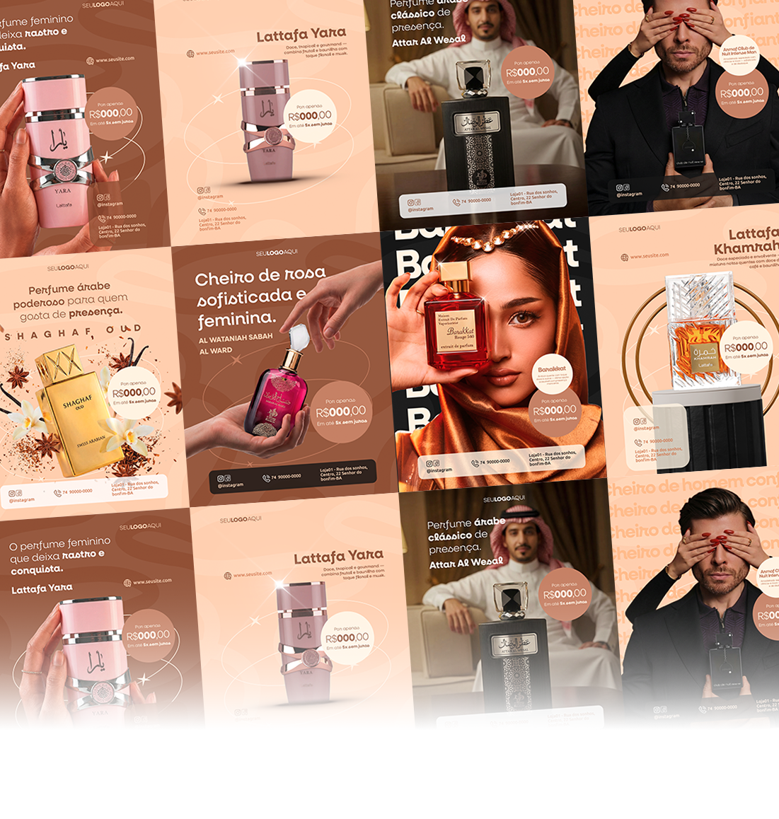 Artes editáveis no Canva com estética árabe premium para lojas e revendedores que querem vender mais!